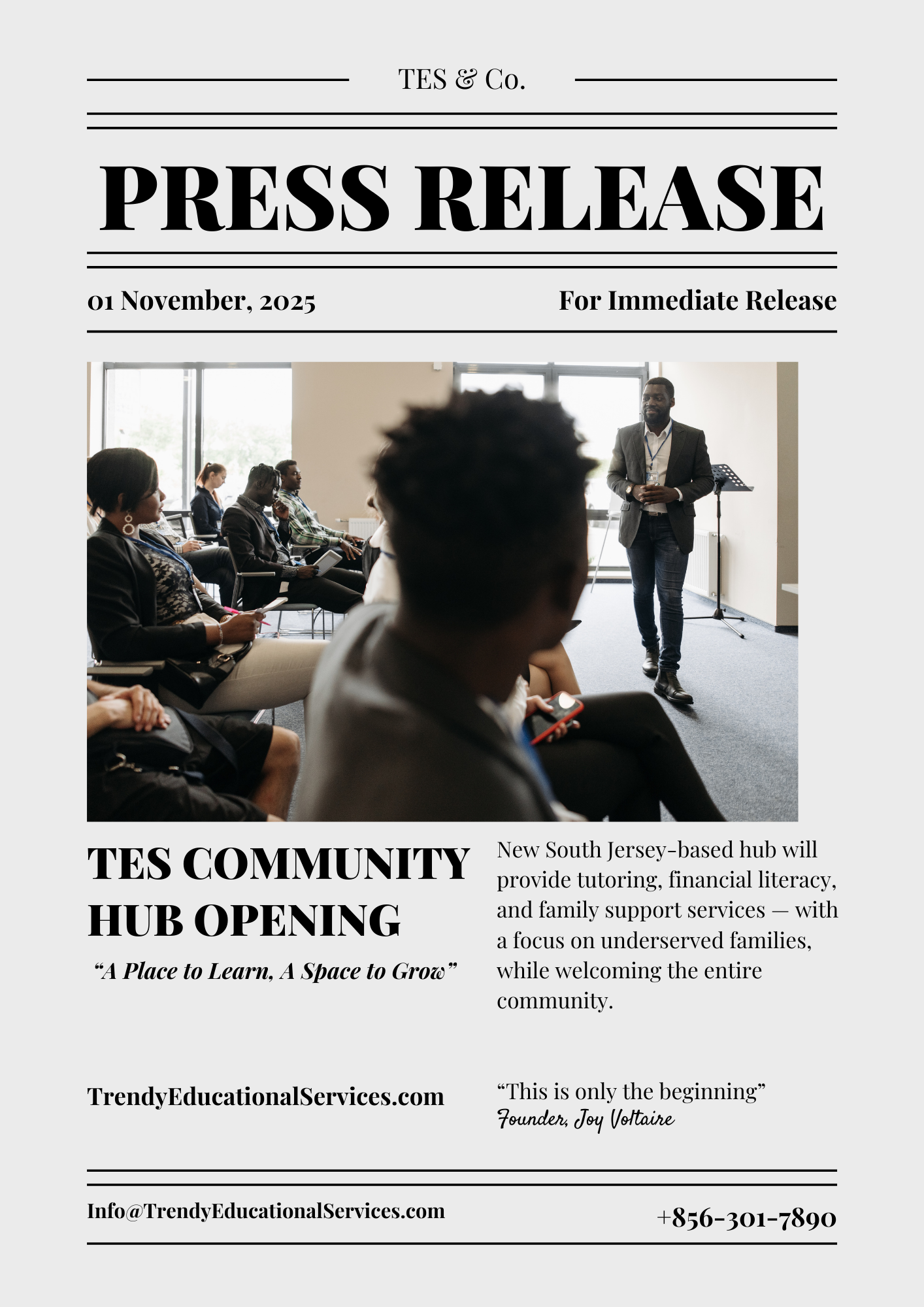 This fall, Trendy Educational Services (TES) is proud to announce the opening of the TES Community Hub in Gloucester County, NJ — a welcoming, multi-use starter space designed to serve families through education, empowerment, and financial freedom.