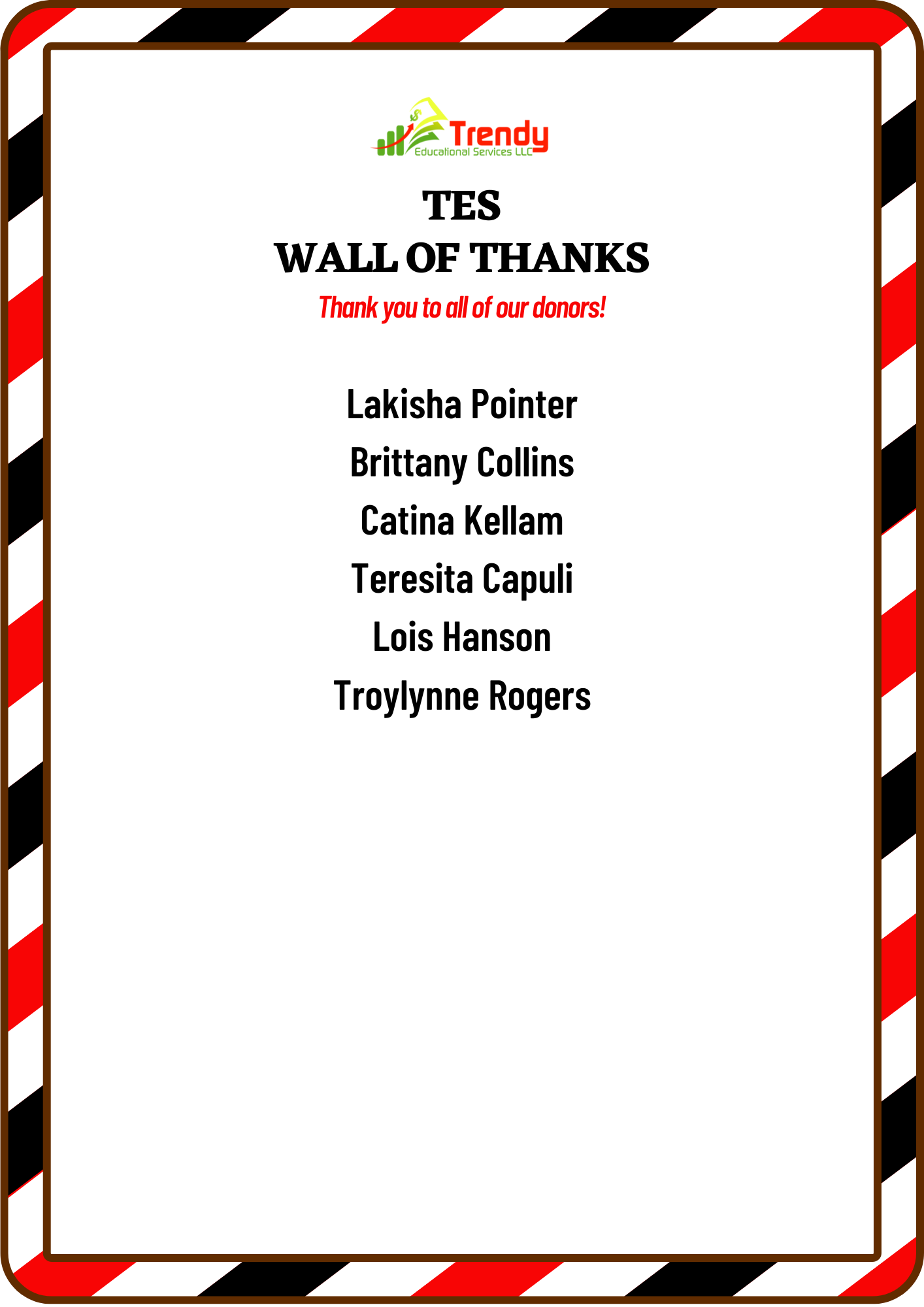 As we've progressed, we've made strategic investments to ensure the success of our mission. These expenses, totaling $2,846.19, reflect our dedication to excellence and inclusivity. They include the formation of Trendy Educational Services LLC and Trendy Educational Foundation, as well as essential services like educational consulting, tax advisory, marketing efforts, and website development.