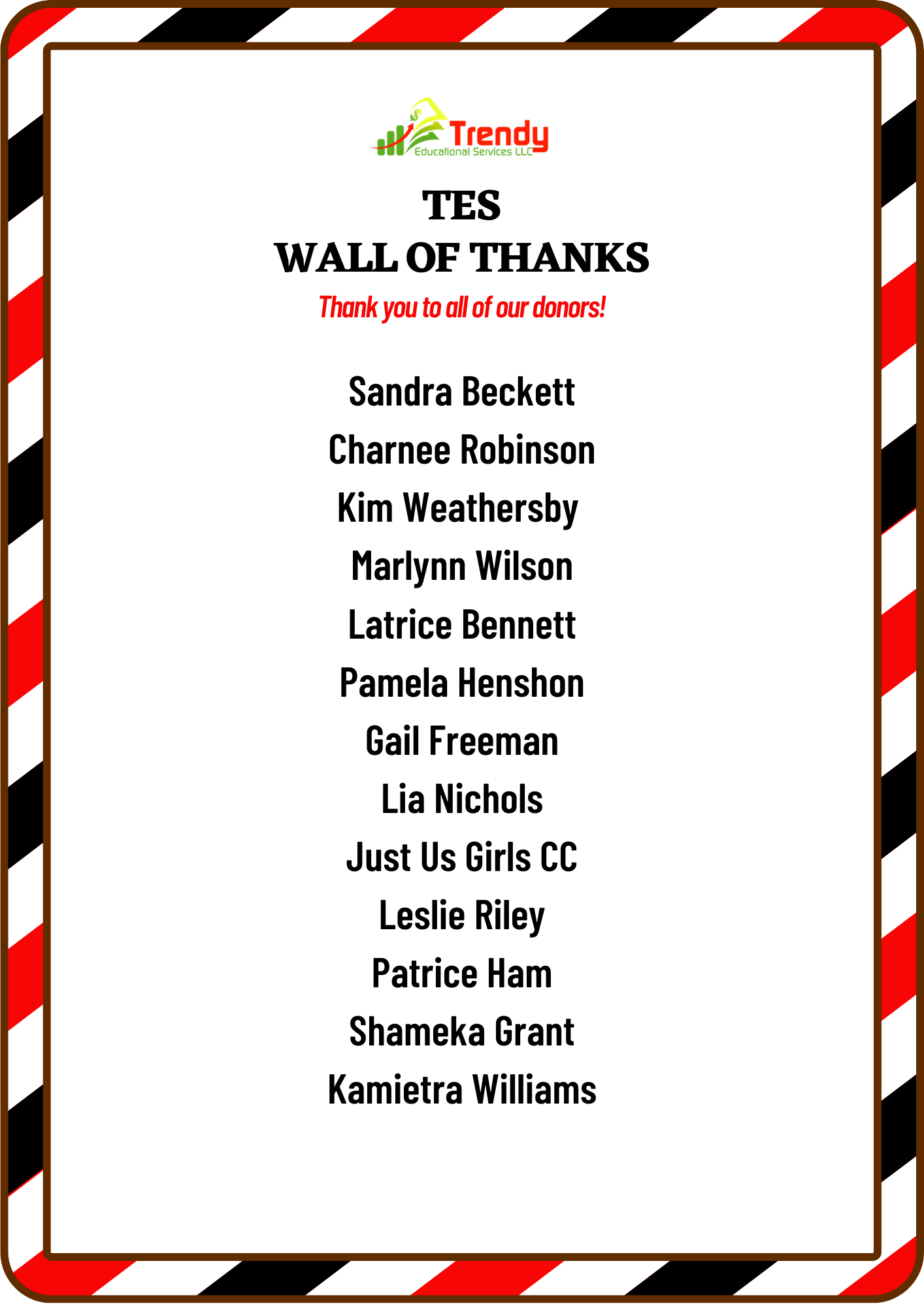 At Trendy Educational Services LLC, we value the power of partnerships to amplify our message, increase our impact and extend our reach. We actively seek collaborations with like-minded organizations and or individuals, who share our passion for education and empowering communities. Our partnerships are integral to our mission of providing free tutoring in reading, financial & educational resources, classes, and other services to those in need